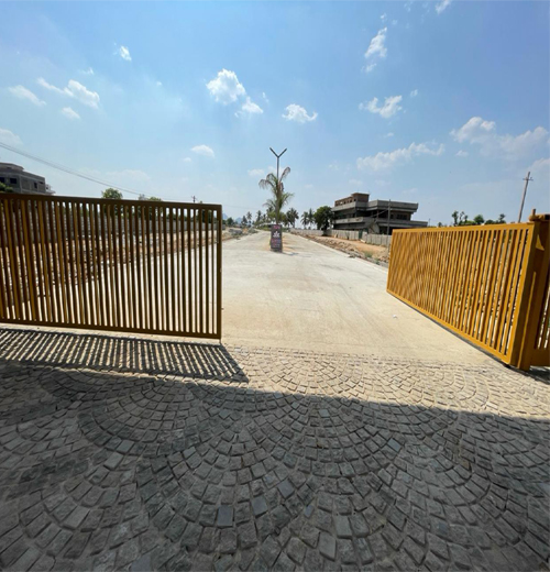 As you drive into the project a beautiful entrance arch welcomes you, The project has a high wall compound on all sides with 50 ft white top internal roads.